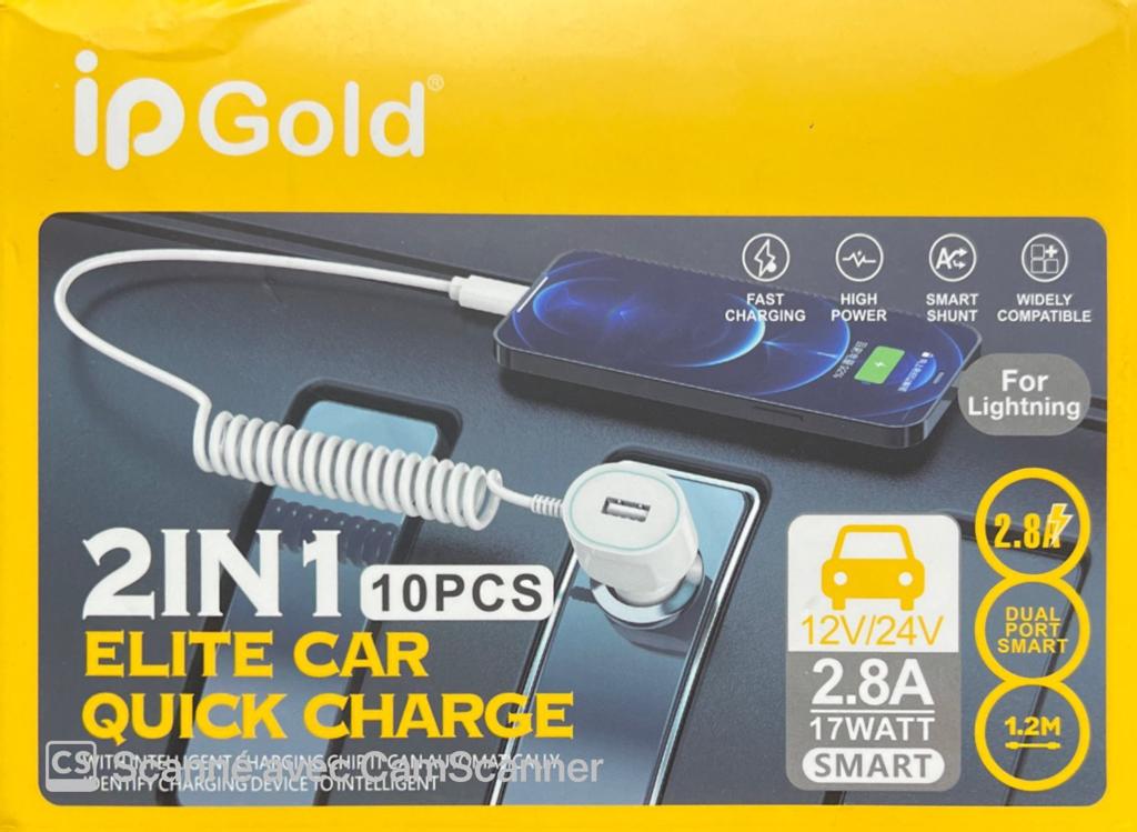 IP GOLD 2IN1 ELITE CAR QUICK CHARGE FOR LIGHTNING IP-D22